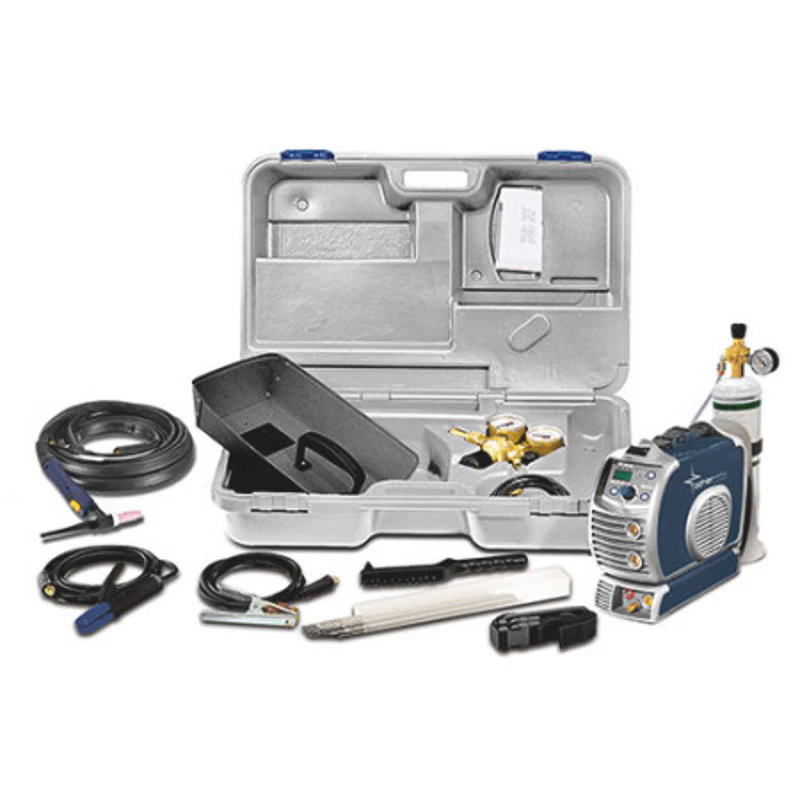 URANOS 1500 TLH / Porte-électrode enrobé / Câble de terre / Brosse métallique et marteau de décrassage / Protège-main / Rallonge de sangle de transport / Pack de 20 électrodes / Kit tuyau gaz / Bouteille de gaz et support bouteille / Limiteur de pression / Torche TIG ST 1500S